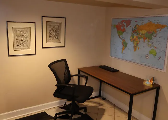 Der Smithsonian National Zoological Park ist circa 2 Kilometer von, und kulturelle Attraktionen wie das President Lincoln and Soldiers' Home National Monument befinden sich in einer Entfernung von 3 km von der Villa. Die Villa in Washington liegt in circa 10 Fahrminuten Entfernung vom John-F.-Kennedy-Zentrum für Darstellende Kunst. Die Villa 4 Bedroom Downtown Dc With Private Parking Walk Metro Nightlife liegt im Stadtviertel Northwest Washington DC von Washington und ist in einer Entfernung von 4 km von historischen Stätten wie dem Jefferson Memorial.